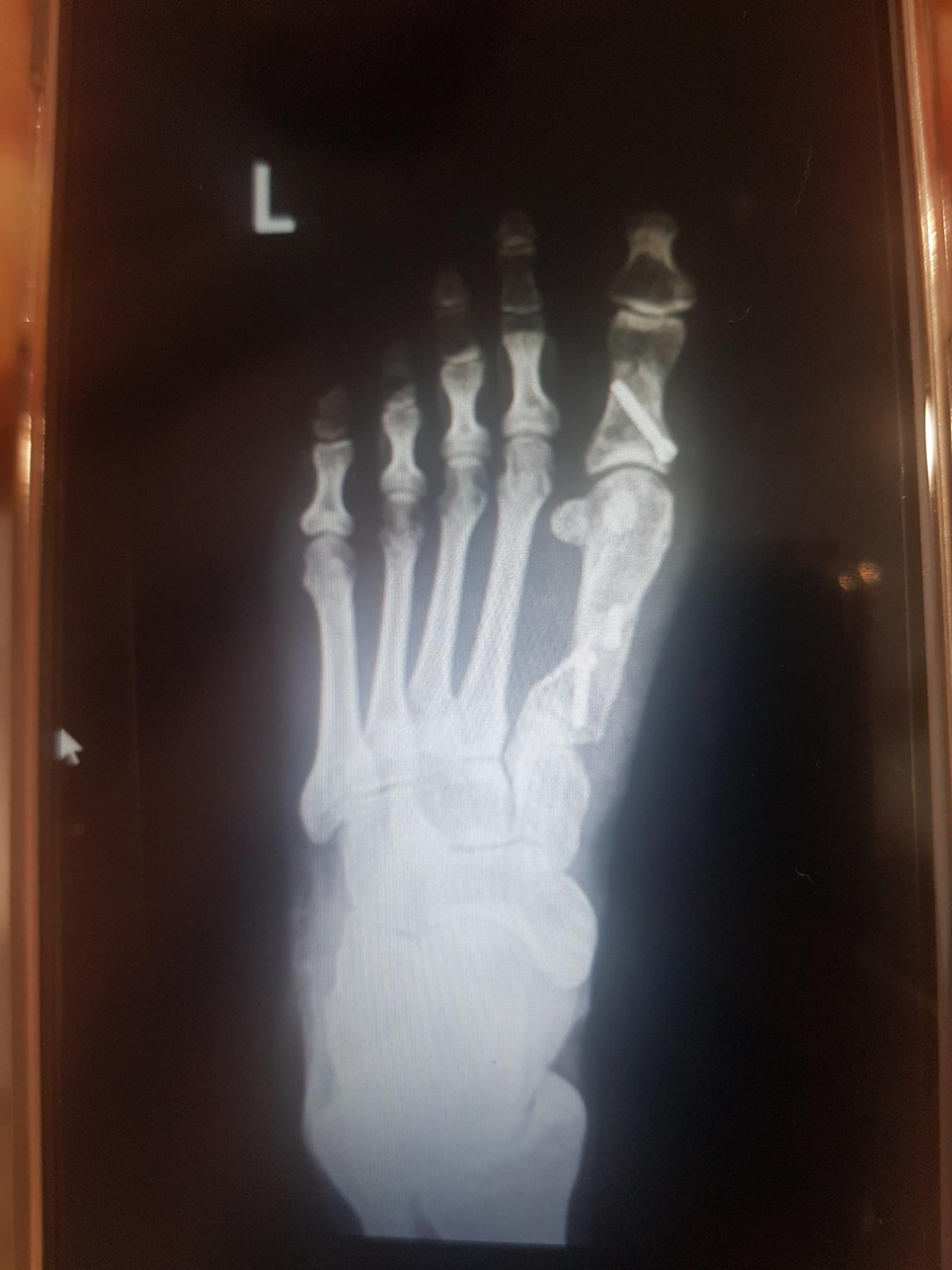 왼발은 핀제거 모습 오른발은 수술 직후 사진이에요.